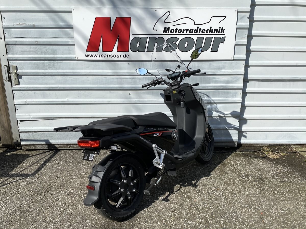 Schneller, stärker, weiter . 90 km/h Höchstgeschwindigkeit, 140 km Reichweite, großes 16-Zoll Vorderrad, flacher Durchstieg und 2 Akkus in Serie. SUPERSOCO baut mit dem brandneuen CPX seine technische Position im Elektrofahrzeug-Bereich mehr als deutlich aus. Die Innovation zeigt sich in vielen weiteren cleveren Details und lässt - bereits in Serienausstattung - kaum Wünsche offen.